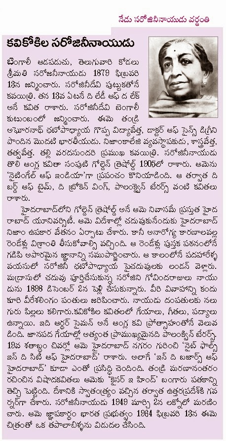 Sarojini Naidu Quotes In Telugu / She played an important role in india's freedom struggle and also promoted women's righ.
