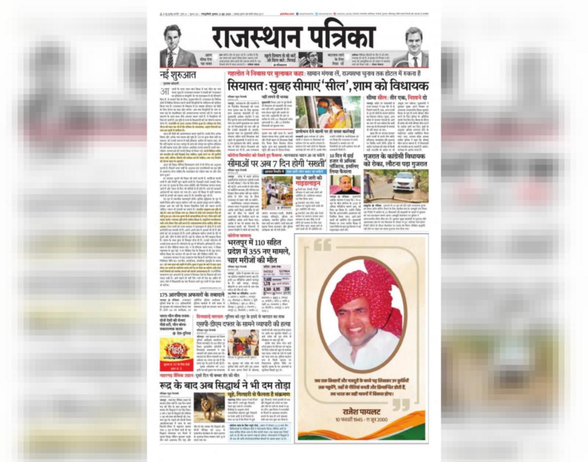 Sawai Madhopur Patrika Today Newspaper : तत्कालीन कलेक्टर के.सी.वर्मा के sawai madhopur app के बारे में विचार.